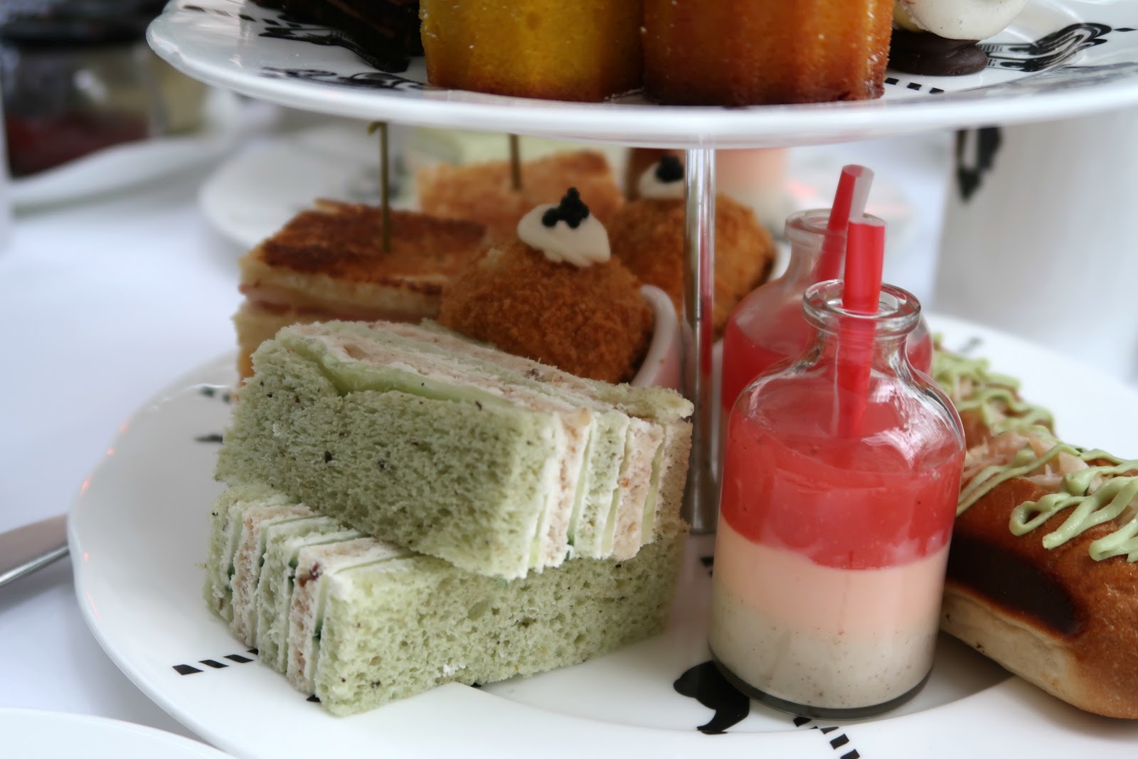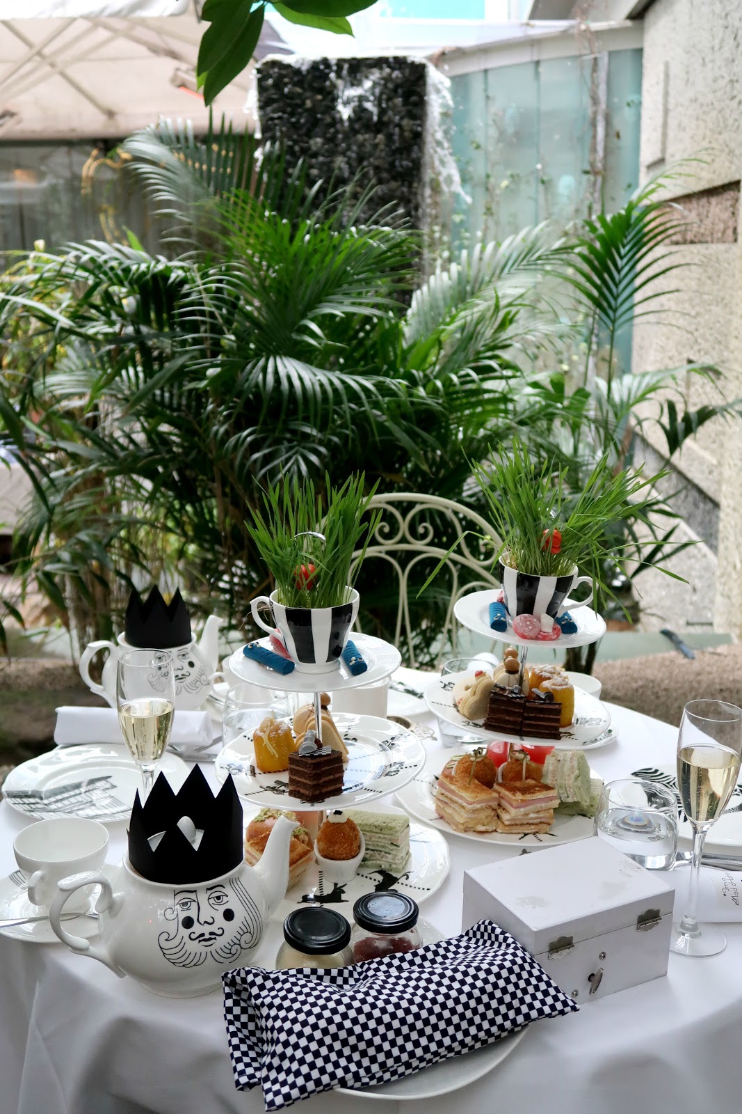 The menu was presented in a vintage book, along with a selection of themed teas inspired by the characters from Alice In Wonderland. It’s the little details that mean the most to me, and I loved having the choice of which drink to pick. The girls opted for the Mad Hatter green tea, but I like an English Breakfast, which was bought out in a separate tea pot. We also had a glass of champagne each too.