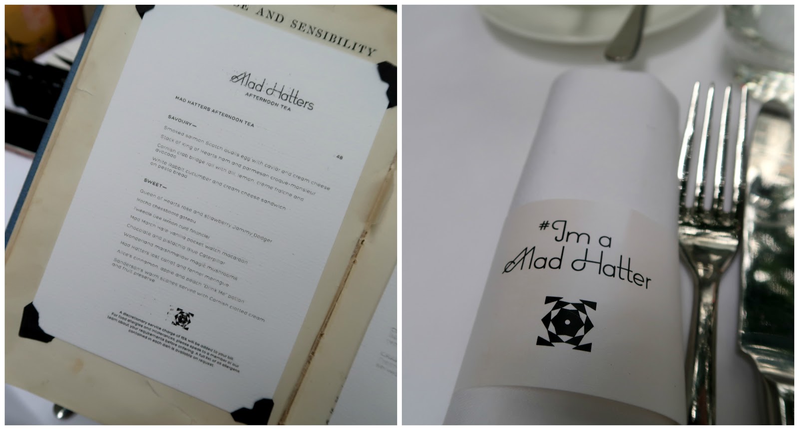 The tiered plates were themed with clocks and compasses on, with little black hats on top of the tea pots. The menu included: