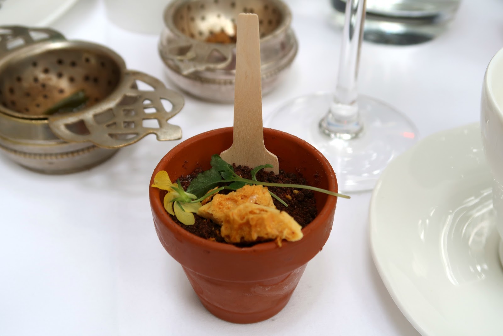 That little pot above that looks like a plant in soil? It was actually ice cream! Such a lovely surprise they bought out half way through. With a Crunchie topping and crushed biscuit to look like mud, it was so well put together, along with everything else we ate! I enjoyed it all, apart from the little blue chocolate truffle on top which was a bit too rich for me personally. Otherwise, the croque-monsieur was my favourite from the savoury tray, and the lemon curd financier from the sweet bit.